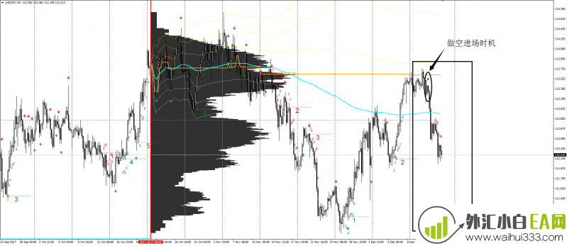 2. 做空时机:K线低于橙色市场统计指标时做空。